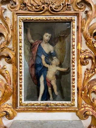 Subito dopo si trova la statua di San Giuseppe con in braccio il Bambino Gesù che gli accarezza teneramente la barba.