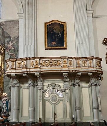 Sopra la cantoria un quadro con San Nicola da Tolentino e Santa Monica.